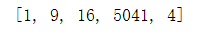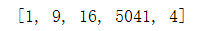 1 array=[1,3,4,71,2] 2 3 ret=[] 4 for i in array: 5 ret.append(i**2) 6 print(ret)