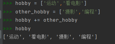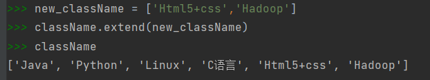 - extend:将另一个列表添加到当前列表的末尾,相当于两个列表进行拼接。