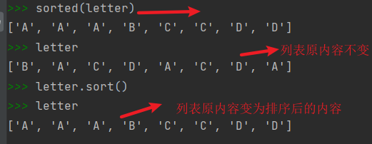 排序:all_list.sort --->排序后改变原来列表内容; sorted:排序后不改变原来内容