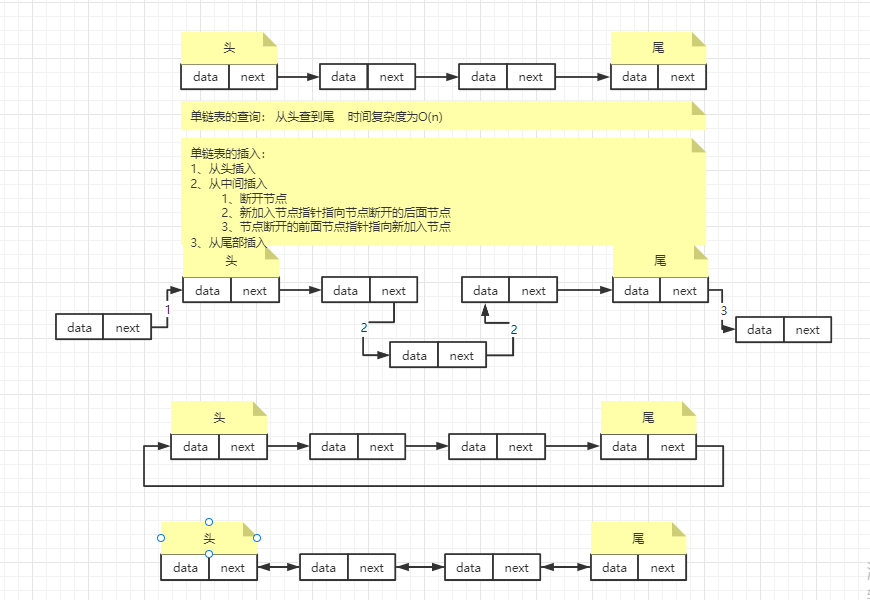 (3)三种最常见的链表结构:单链表、双向链表和循环链表