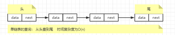 从单链表图中,可以发现,有两个结点是比较特殊的,它们分别是第一个结点和最后一个结点。我们一般把第一个结点叫作头结点,把最后一个结点叫作尾结点。 其中,头结点用来记录链表的基地址。有了它,我们就可以遍历得到整条链表。而尾结点特殊的地方是:指针不是指向下一个结点,而是指向一个空地址NULL,表示这是链表上最后一个结点.