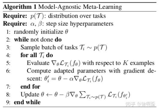 该算法实质上是MAML预训练阶段的算法,目的是得到模型 。不要被这些数学符号吓到喔,这个算法的思路其实很简单。接下来,我们来一行一行地分析这个算法。