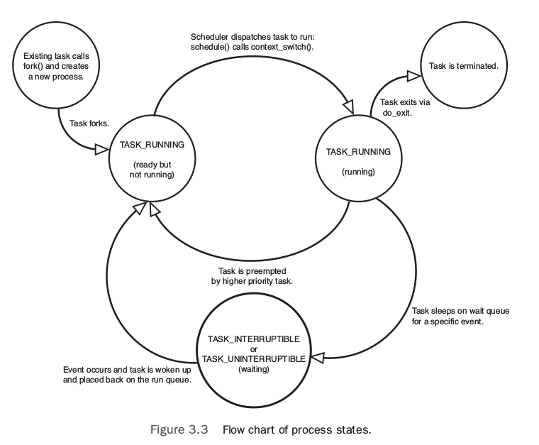task_struct中的state用来表明process当前的状态,有五个: