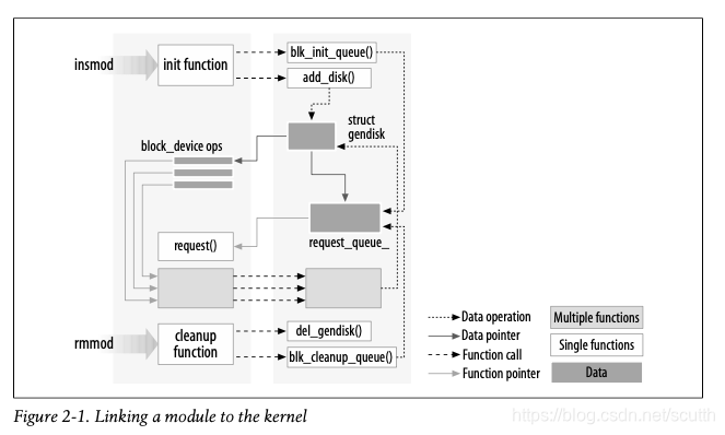 模块化是Linux kernel driver的立身之本,几乎所有的device driver都是module driver,在kernel启动的时候动态加载。直接拿书里的例子看: