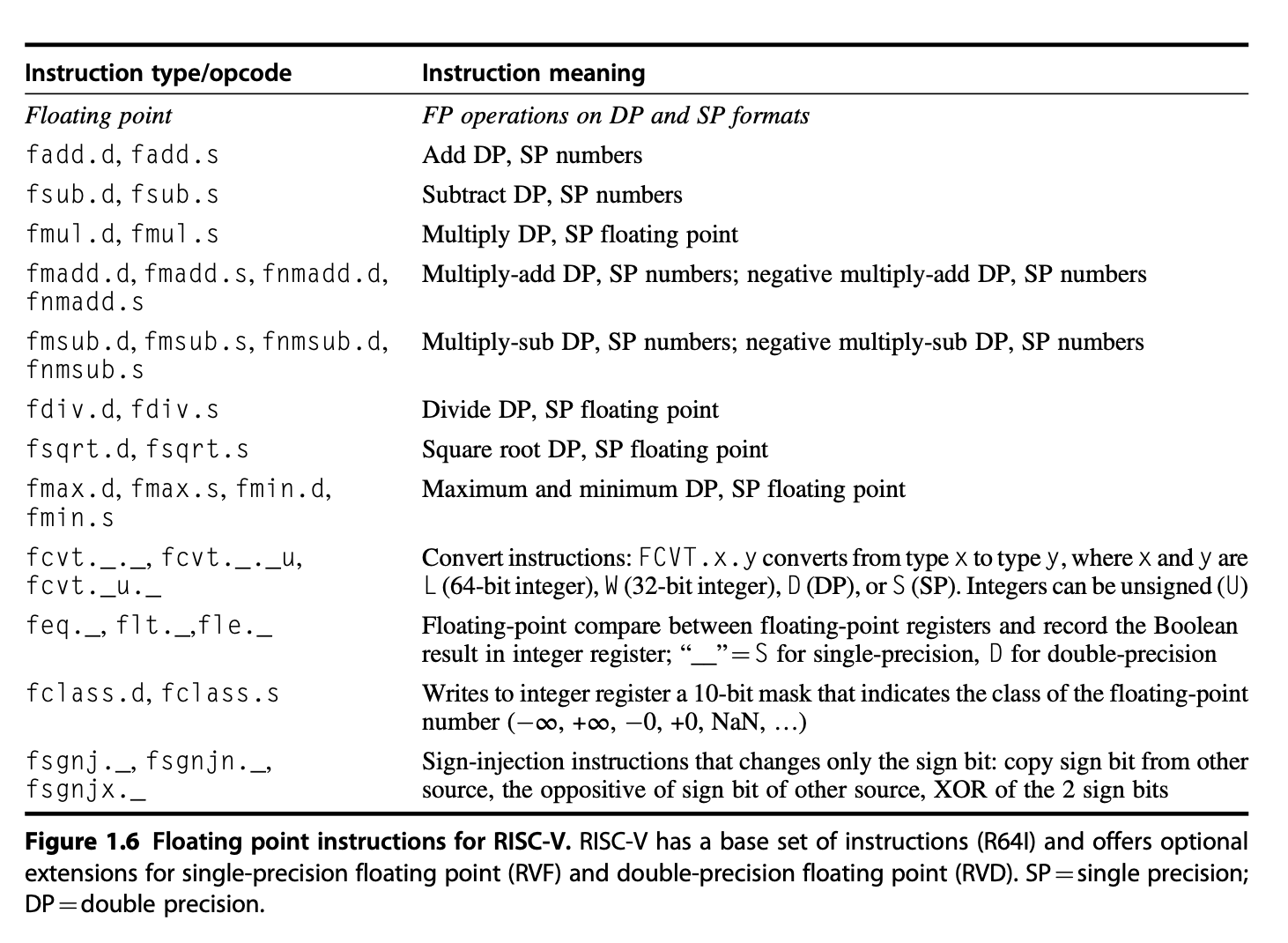 下图是RISC-V的浮点运算ISA: