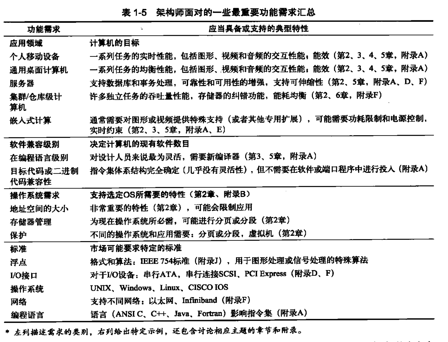 计算机架构师要考虑的内容: