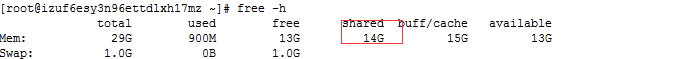 3、通过free -h查看shared|buff/cache占用很大,且无法通过命令释放(echo 3 > /proc/sys/vm/drop_caches)