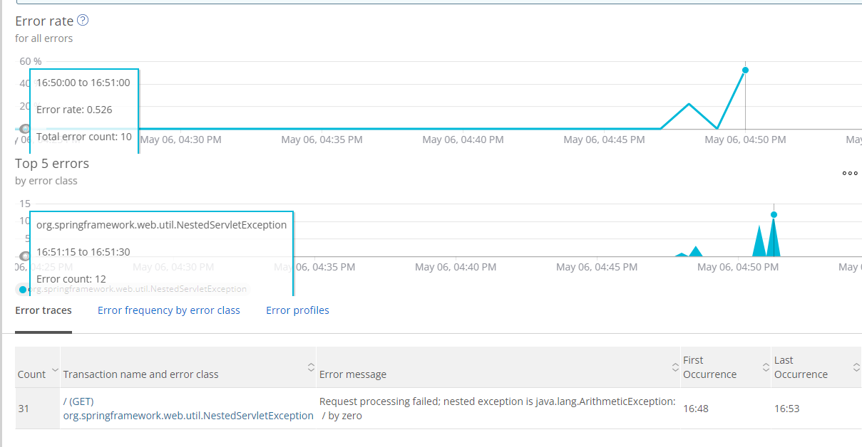 在service中故意放一些运行时会报错的代码,最后添加代理并运行: