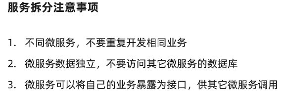 单一职责:一个微服务负责一部分业务功能,并且其核心数据不依赖于其它模块。