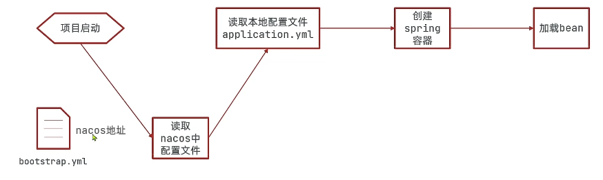 比如 nacos 节点需访问 nacos 集群时,项目配置文件如下: