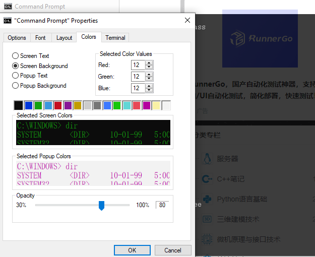 打开cmd,右击窗口点击属性,可以为cmd命令窗口设置文字与背景样式