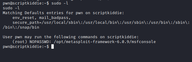 sudo /opt/metasploit-framework-6.0.9/msfconsole