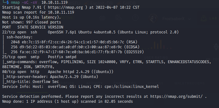 Overflow靶机为Linux机器,上线时间为2021年10月23日,难度等级hard,官方评分4.8,主机IP为10.10.11.119。
