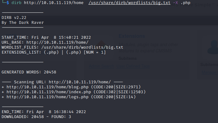 5)扫描一下/home后是否还有其他的可供利用的目录,发现一个logs.php路径。