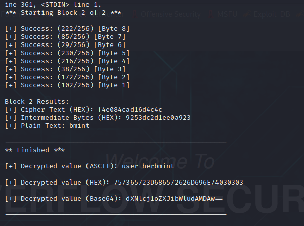 1)使用PadBuster来解密cookie,成功解密出我们的用户名。