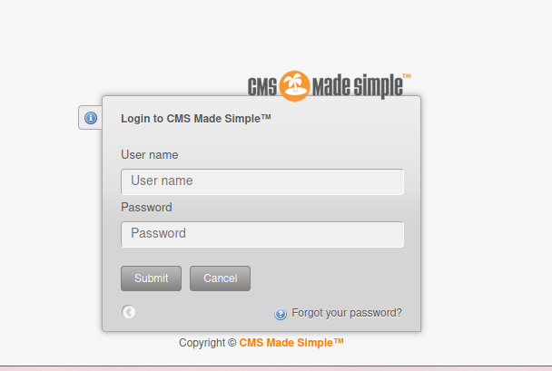 5)点击管理面板查看,发现这是一个CMS Made Simple系统的登录页面,尝试使用刚才注册的账号密码登录,登录失败。