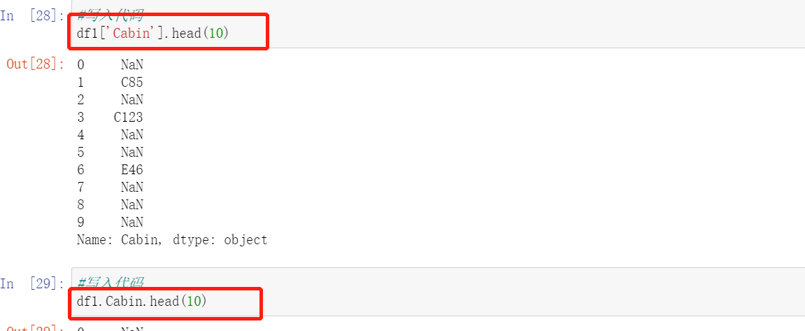 1.4 查看"Cabin"这列的所有值[有多种方法