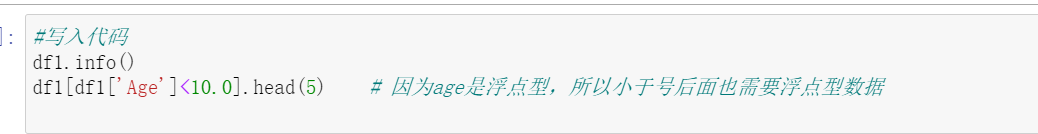 任务一: 我们以"Age"为筛选条件,显示年龄在10岁以下的乘客信息。