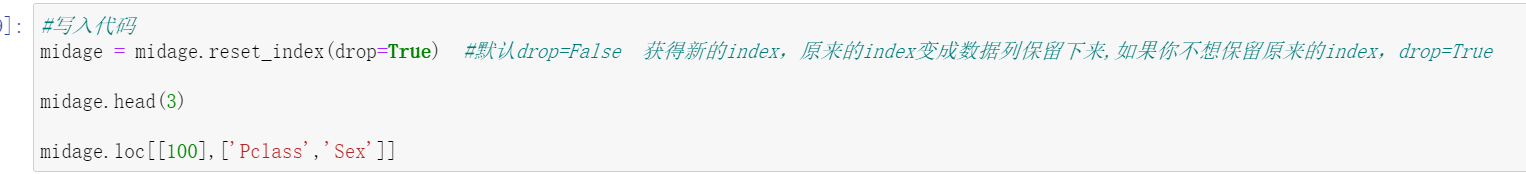 任务三:将midage的数据中第100行的"Pclass"和"Sex"的数据显示出来