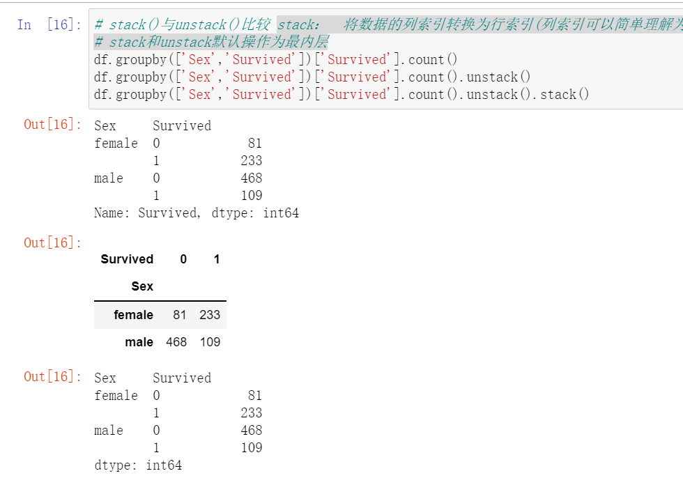 stack: 将数据的列索引转换为行索引(列索引可以简单理解为列名);unstack:将数据的行索引转换为列索引;