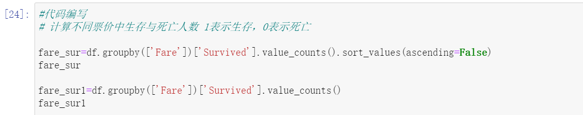 2.7.4 任务四:可视化展示泰坦尼克号数据集中不同票价的人生存和死亡人数分布情况。(用折线图试试)(横轴是不同票价,纵轴是存活人数)