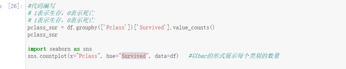 2.7.5 任务五:可视化展示泰坦尼克号数据集中不同仓位等级的人生存和死亡人员的分布情况。
