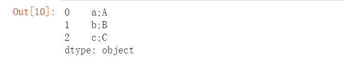 import pandas as pd pd.Series(['a', 'b', 'c']).str.cat(['A', 'B', 'C'], sep = ';' )