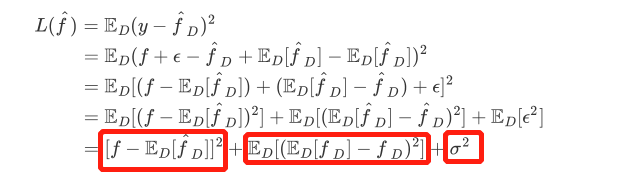 对于实际问题中的数据,我们都可以认为它总是服从某一个分布,预测数据的平均损失主要来自三项: