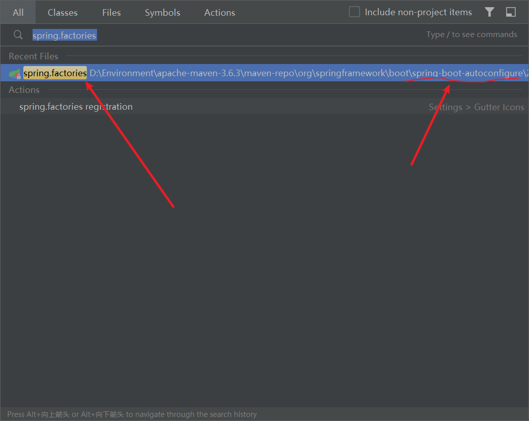 一、在项目中三峡shift打开搜索,搜索spring.factories