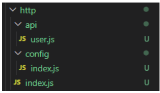 在 src 下面新建 http 文件夹,用来存储关于 axios 请求的一些文件,然后在 http 文件夹下新建 index.js 文件,用于封装我们的 axios,然后在新建 config 文件夹,主要用来创建配置文件,最后新建一个 api 文件夹,用于集中管理我们的接口。