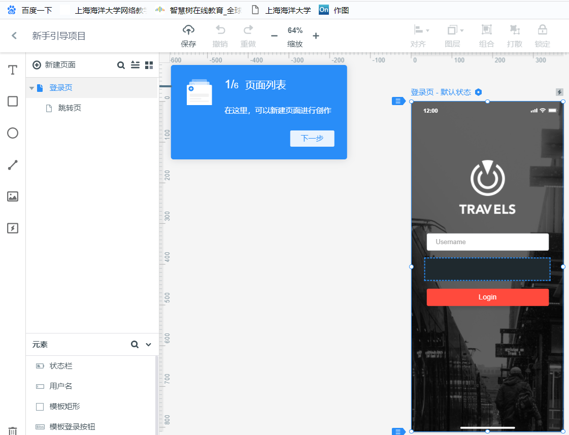 引入该平台的一个案例,它的页面设计素材等都是自己导入的,图形也要自己裁剪,案例较少。