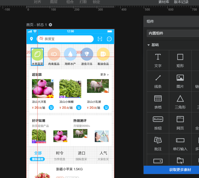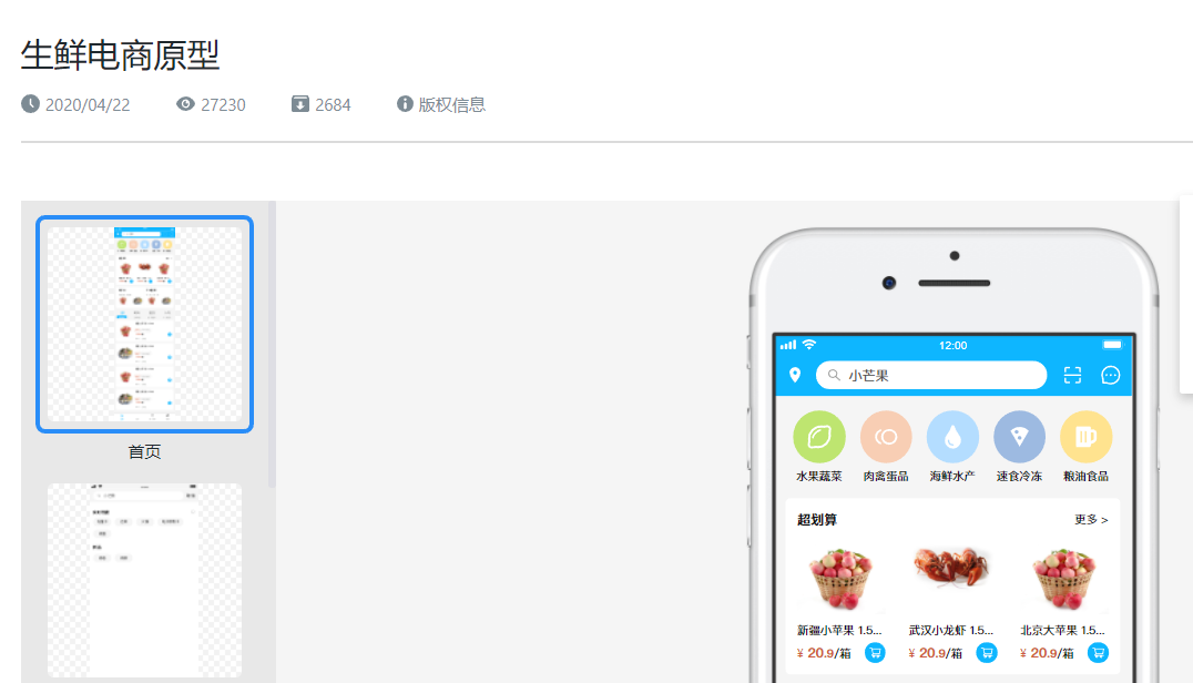 (1)找到和你原型类似的模板(图为生鲜平台我将它加工以下就成了“扶贫宝”)