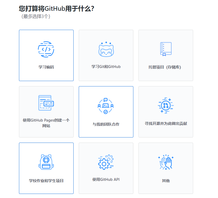 3.根据我的需要,我选择了学习代码、团队合作、学生项目三个板块旨在为之后我们扶贫宝小组合作代码做准备