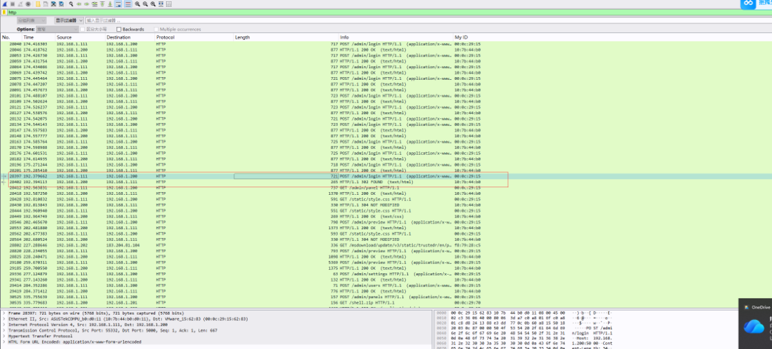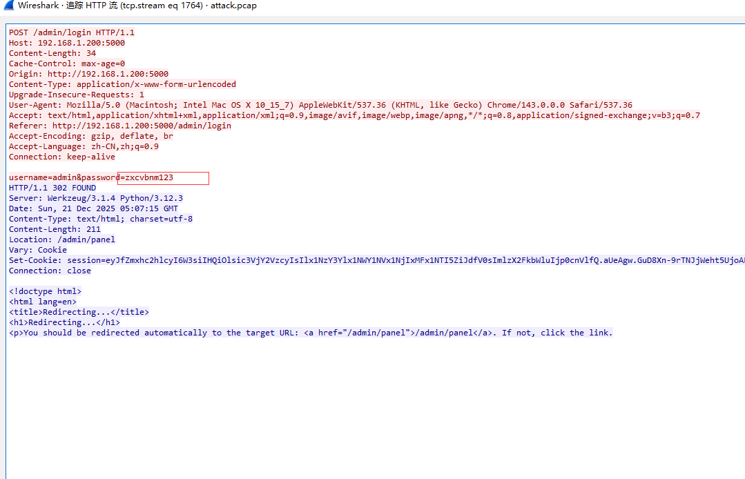 并找到最后一个login,右键追踪一下,就看到后台密码了