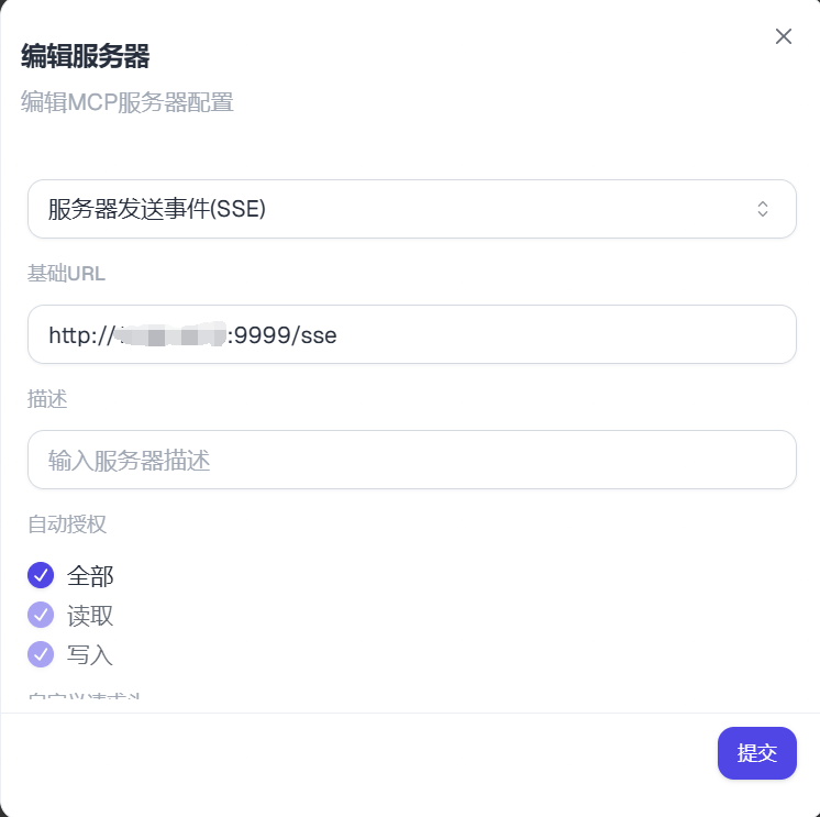 注意服务器类型选sse,url即上面的服务器的url,此处注意如果工具不通,可以尝试把localhost更换为本机局域网ip。