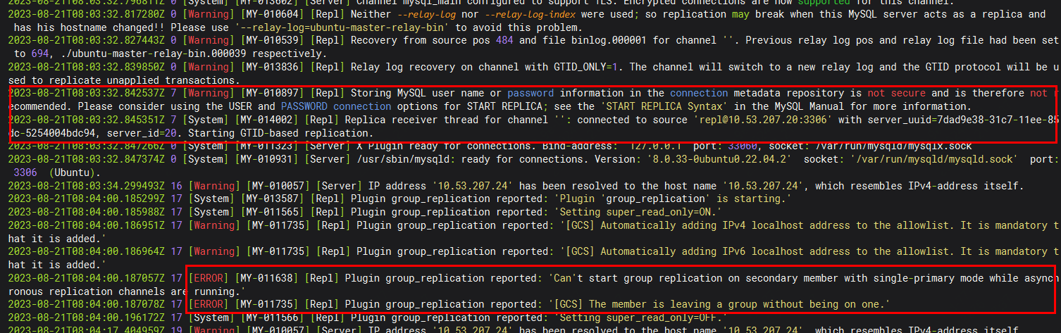Replica receiver thread for channel '': connected to source 'repl@10.53.207.20:3306' with server_uuid=7dad9e38-31c7-11ee-85