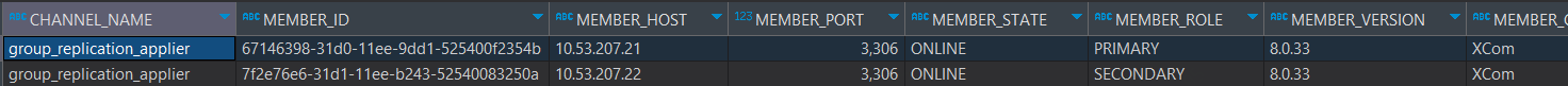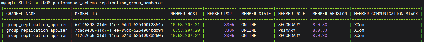 SELECT * FROM performance_schema.replication_group_members;