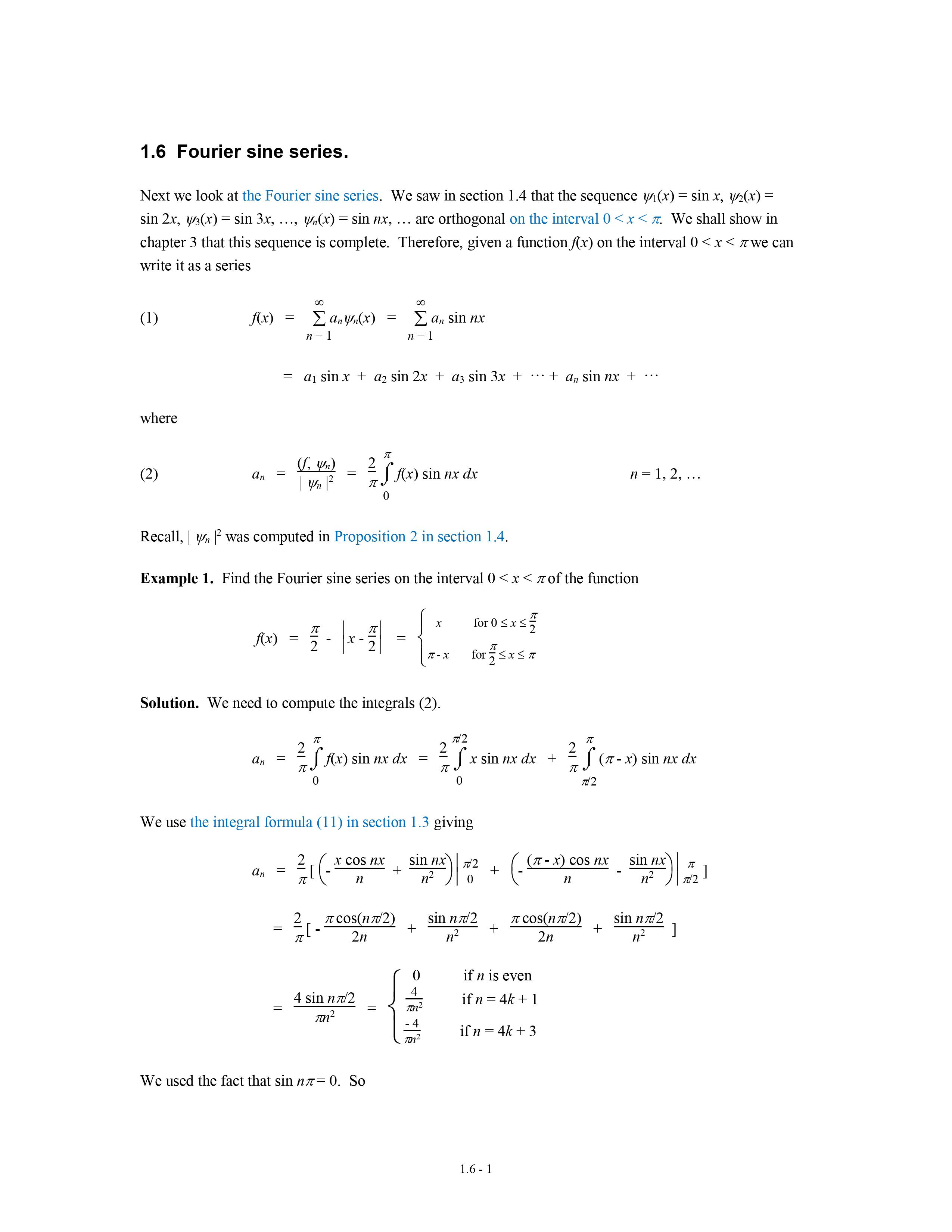 [搬运]Fourier Series and Boundary Value Problems 第一章1.6 Fourier sine series