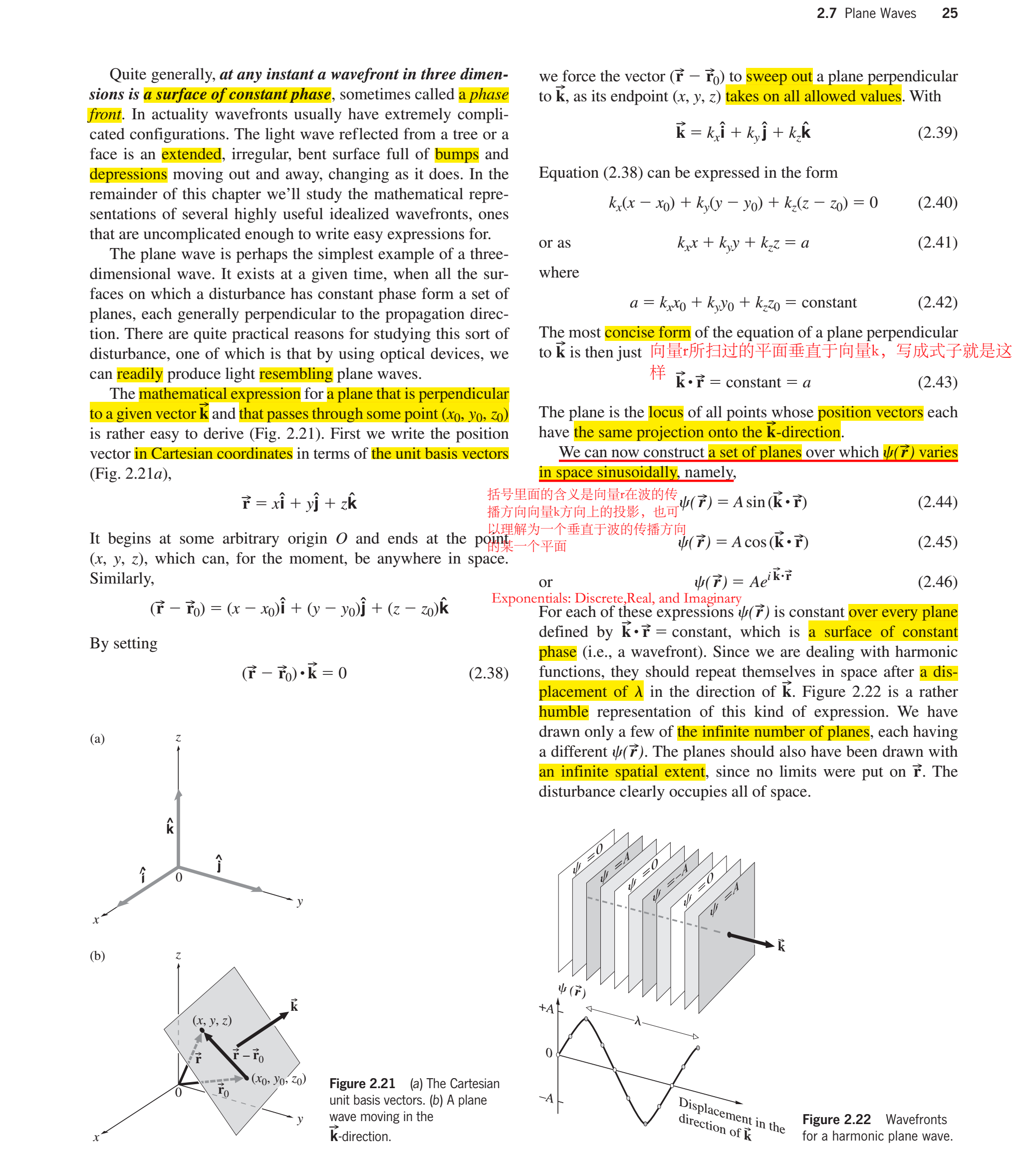 [读书笔记]平面波的数学表示 Optics 5th 作者Eugene Hecht