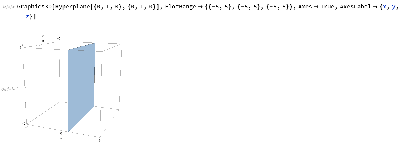 Hyperplane[{0,1,0},{0,1,0}]的意思就是生成一个垂直于前面一个向量{0,1,0}的平面,这个平面过后面一个点{0,1,0}