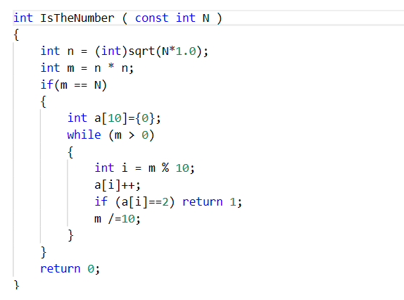 本题要求实现一个函数,判断任一给定整数N是否满足条件:它是完全平方数,又至少有两位数字相同,如144、676等。