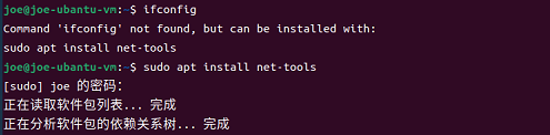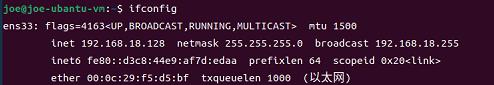 查看Ubuntu 22.04 LTS(VMware虚拟机)中的IP地址(命令ifconfig),如果命令找不到的话需要安装net-tools(命令sudo apt install net-tools)