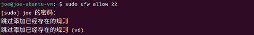 在Ubuntu中打开防火墙中的22端口(命令sudo ufw allow 22)