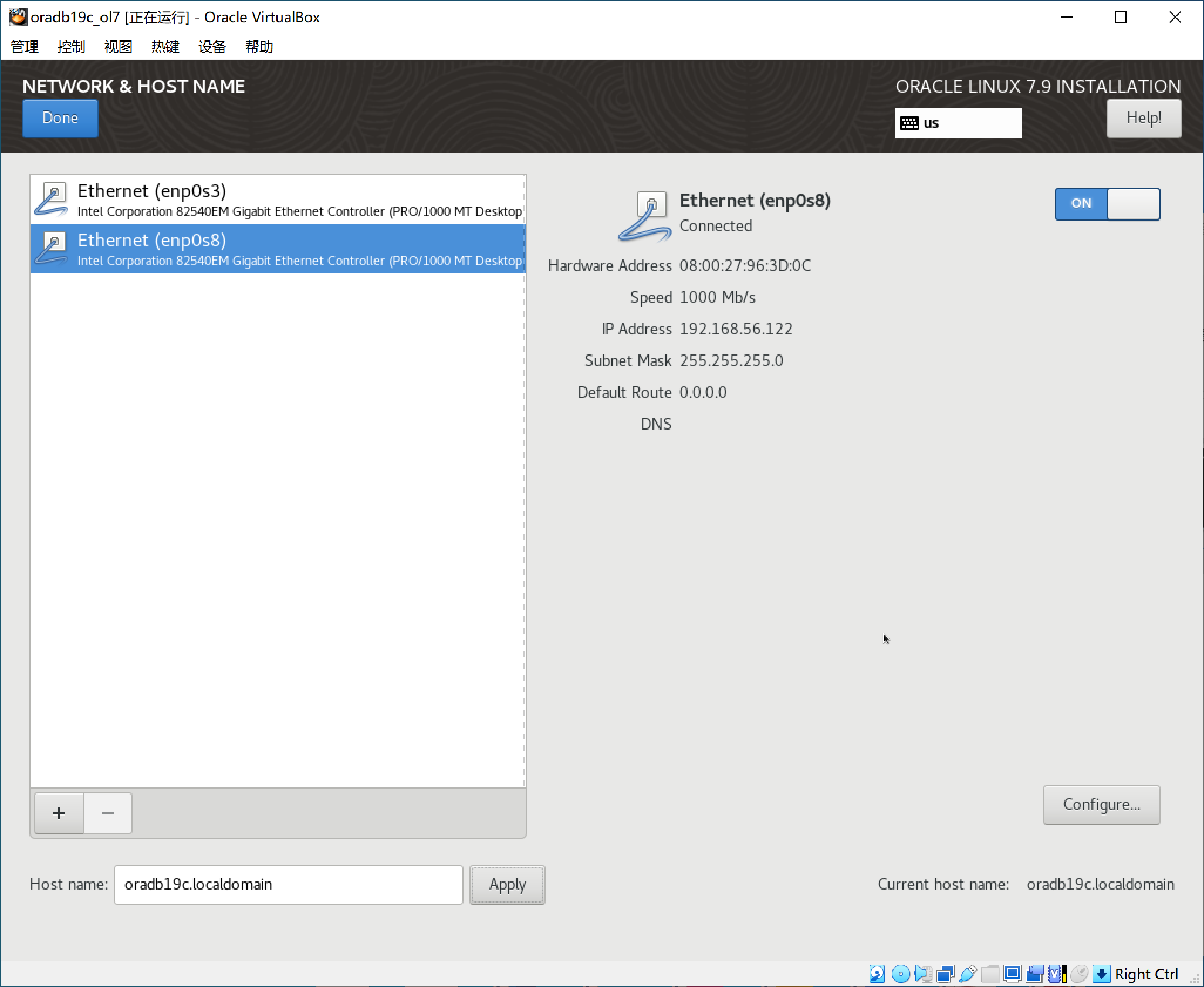 [root@oradb19c ~]# nmcli conn up enp0s8