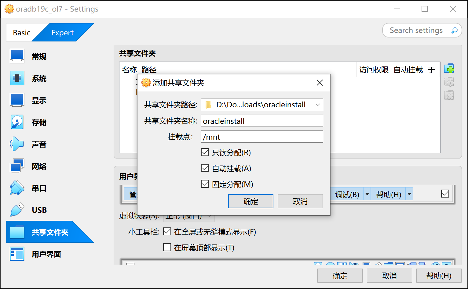 - 设置 oracleinstall 目录共享到虚拟机 /mnt 目录