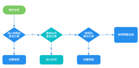 ====如果当前同时运行的线程数量达到最大线程数量且队列也已放满了任务,就要使用ThreadPoolExecutor定义的策略