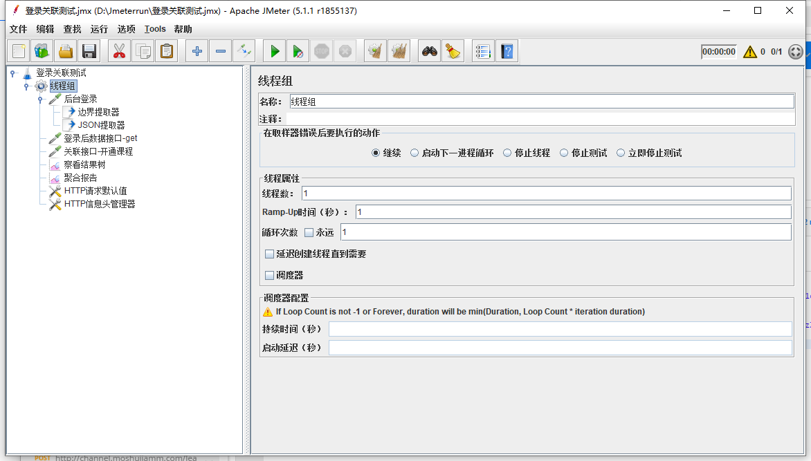 2.线程组:设置并发数量、循环次数、持续时间等信息的