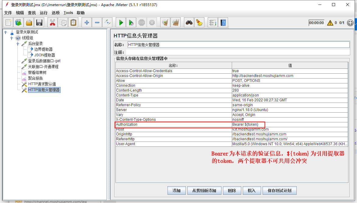 3.提取token放入到 HTTP信息头管理器(未出现冲突但不建议,仅供演示)