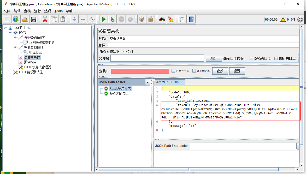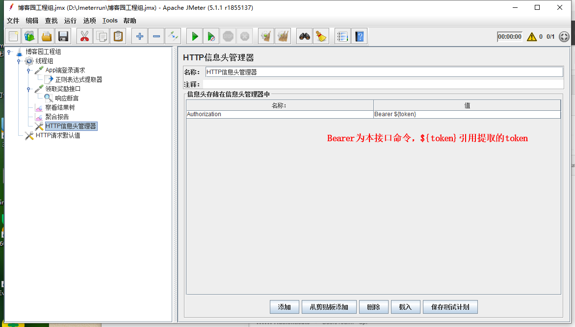 4.然后运行,关联接口会自动去信息头管理器取可用token